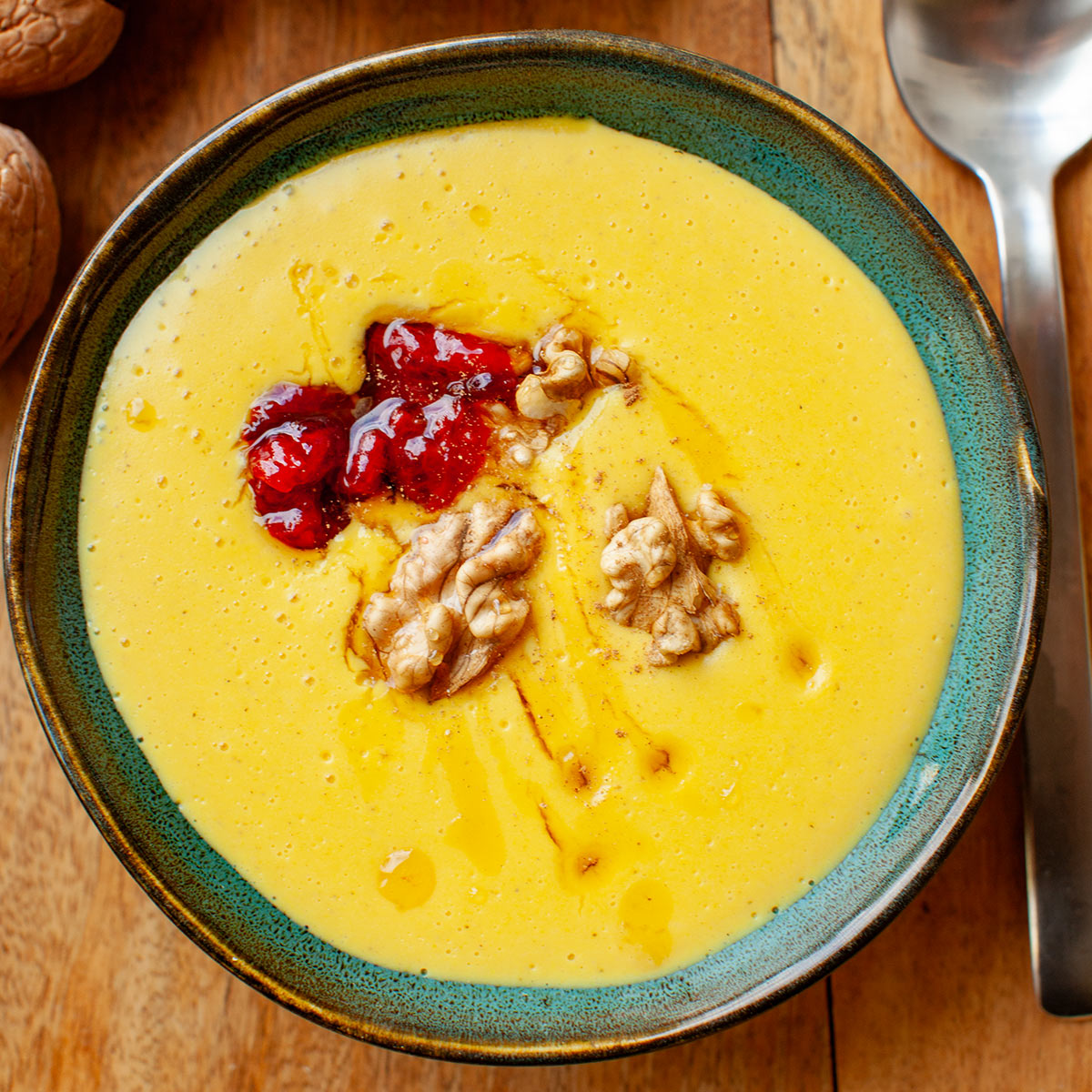 Obłedny smak "pumpkin spice" i mój lubiony budyń jaglany. Z tego połączenia musi wyjść coś pysznego! Kremowy budyń z ugotowanej na mleku kaszy jaglanej, tym razem z dodatkiem pokrojonej dyni, a także aromatycznych przypraw korzennych jak cynamon, kurkuma, gałka muszkatołowa i mielony imbir. Posłodzony miodem i dla chętnych doprawiony dodatkowo masłem orzechowym.