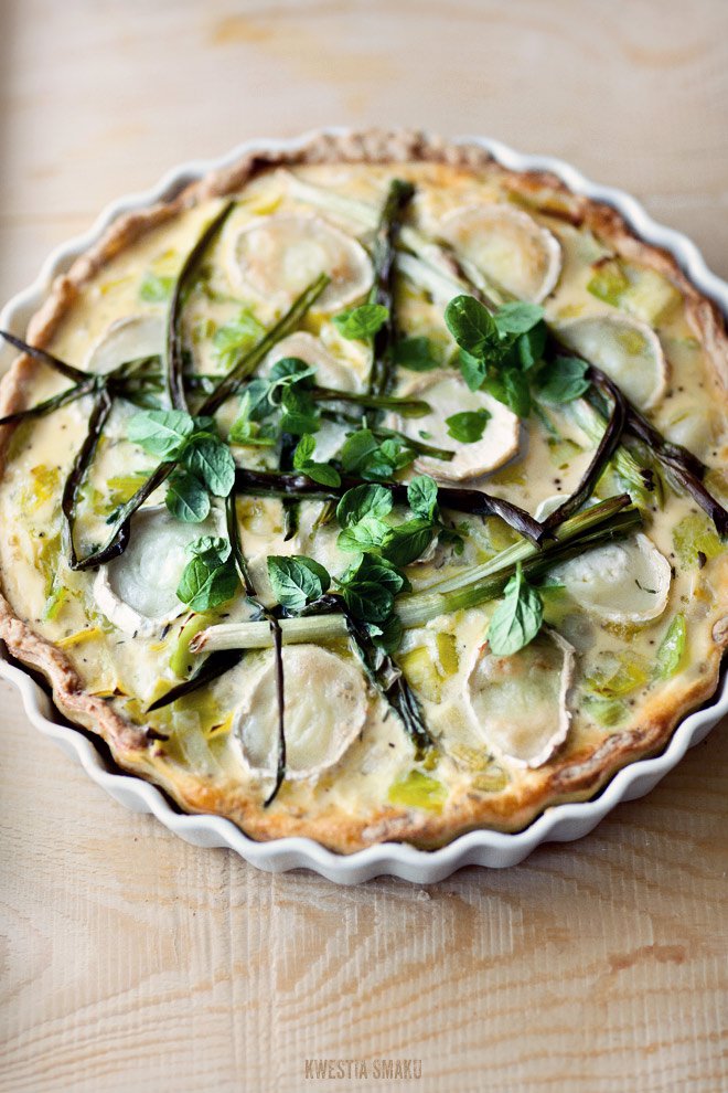 Quiche z duszonymi porami, kozim serem, szczypiorkiem i miętą