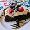 Rozpływające się w ustach, miękkie ciasto czekoladowe bez mąki, które po upieczeniu opada i tworzy wgłębienie na bitą śmietanę i owoce!