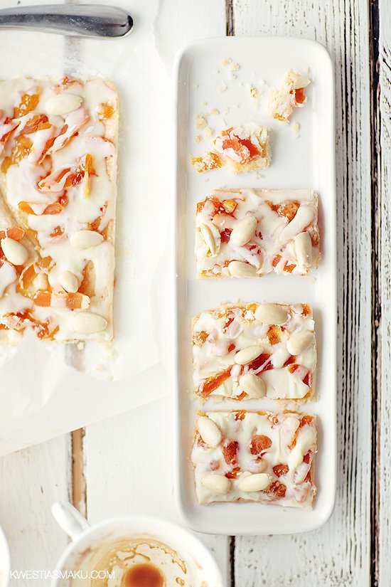 Mazurek pomarańczowy z białą czekoladą i suszonymi morelami
