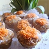 Ekspresowe przygotowanie - wystarczy wymieszać składniki, ale niezbyt długo, tylko do połączenia się składników. Więcej zabawy będzie z przygotowaniem dekoracji - kandyzowanych plasterków marchewki w kształcie rurek, ale nie są one konieczne. Rurki można przygotować dzień wcześniej.