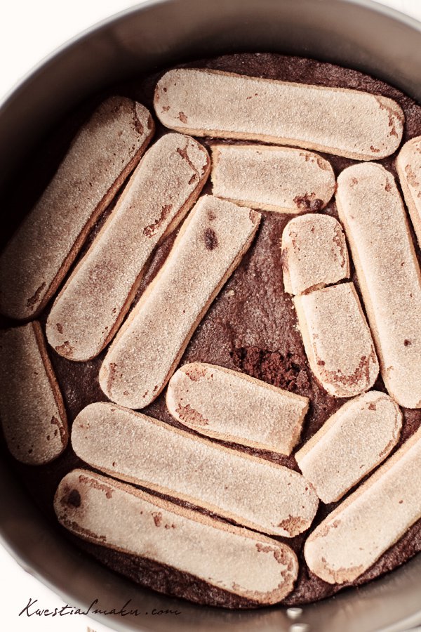 Na czekoladowym spodzie z biszkoptami nasączonymi kawą
