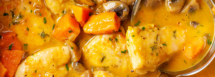 Danie z jednego garnka, do ugotowania na kuchence, bez konieczności zapiekania. Świetnie smakuje odgrzewane, więc jeśli chcemy możemy ugotować je wcześniej. Robi się je naprawdę szybko - w dużym garnku podsmażamy kolejno składniki: piersi kurczaka doprawione świeżym tymiankiem, dynię i pieczarki razem z cebulką. Następnie zalewamy bulionem i gotujemy. Zaprawiamy śmietanką, doprawiamy natką pietruszki i gotujemy kilka minut, otrzymując pyszny sos (również z dodatkiem części rozgotowanej dyni). Podajemy z ziemniakami, tłuczonymi lub podsmażanymi.