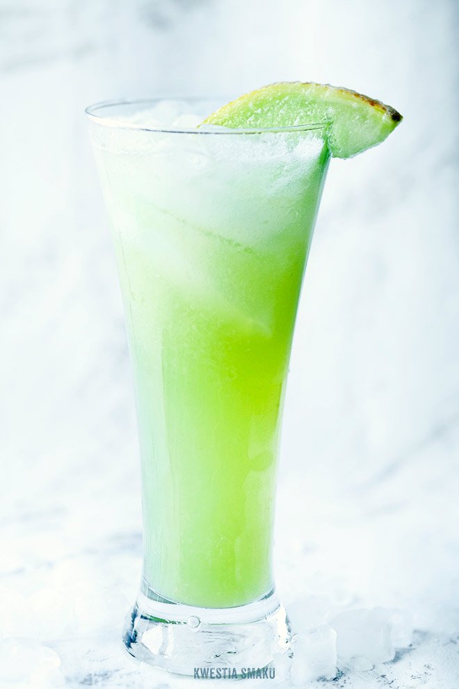 - Wszystko przecedzić do czystego naczynia. Do przecedzonego soku dodać syrop z cukru i sok z limonki, wymieszać i schłodzić w lodówce. Podawać z kostkami lodu i plasterkiem melona.