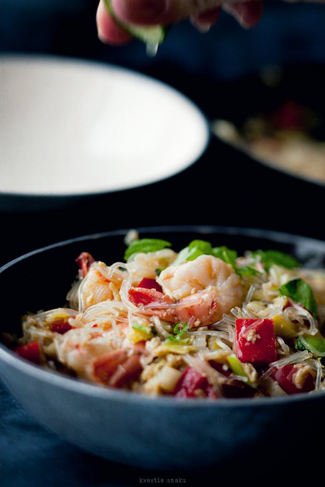 Pad Thai z kapustą pekińską, krewetkami i miętą