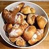 Proste rogaliki z ciasta drożdżowego nadziewane marmoladą (np. morelową lub z płatków róży), całymi wiśniami w słodkiej zalewie, lub też czekoladą.