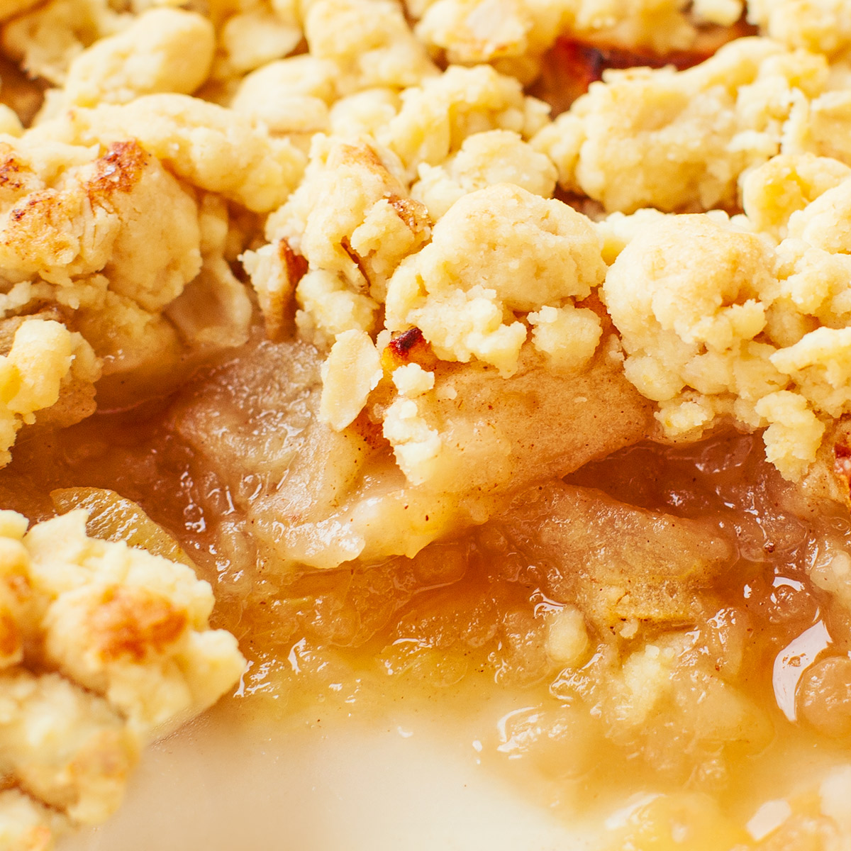 - Rozkruszyć ciasto na podpieczone jabłka i piec przez kolejne 25 minut (na złoty kolor).