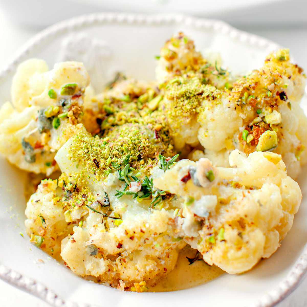 Kalafior zapiekany z gorgonzolą i pistacjami