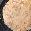 - Filety włożyć z powrotem na patelnię i wsunąć je pomiędzy grzyby. Trzymając danie na ogniu wlać gorący bulion i zagotować. Gotować przez około pół minuty.