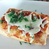 - Posmarować sosem pomidorowym, posypać tartym serem, łyżeczką suszonego oregano i płatkami chili. Zapiekać przez ok. 20 minut. Posypać listkami kolendry lub posiekaną natką.