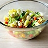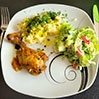 - ziemniaki i sałatka np. z sałaty, papryki, cebuli, pomidora i mini mozzarelli + miodowy winegret (oliwa, sok z cytryny, miód, sól, pieprz).