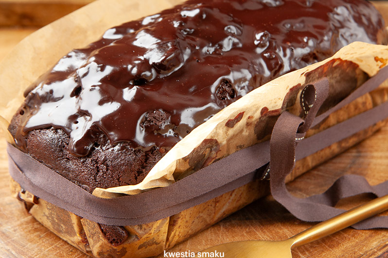 • Masę wylewać do przygotowanej foremki, do środka wsypując pomiędzy warstwy drugą połowę tabliczki czekolady połamanej na kosteczki. Wyrównać powierzchnię i wstawić do piekarnika. Piec przez ok. 45 minut, do suchego patyczka.