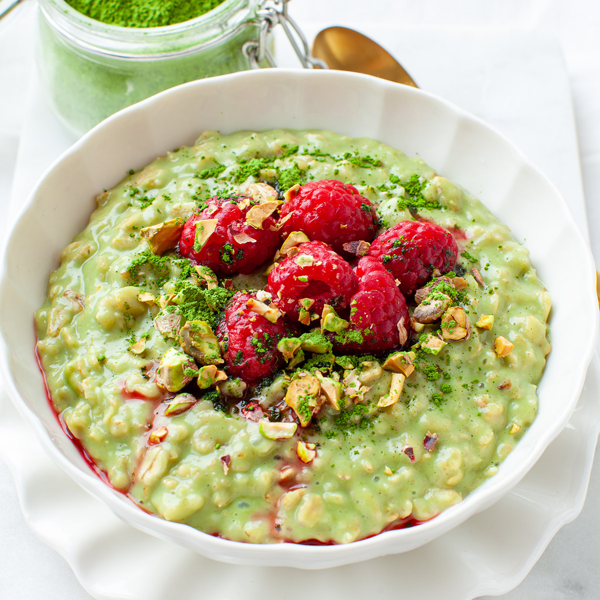 Pistacjanka - owsianka z dodatkiem kremu pistacjowego oraz opcjonalnie matchy