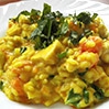 Aromatyczne i kremowe risotto z kurczakiem i dynią doprawione kurkumą i curry w proszku.