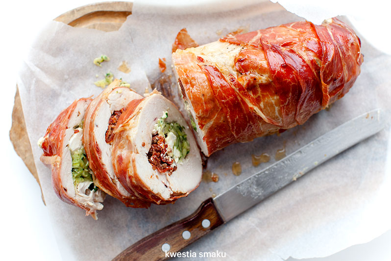 kwestiasmaku Rolada z indyka faszerowana cukinią, fetą i suszonymi pomidorami