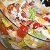 Sałatka z kurczakiem, jajkiem, boczkiem, grzankami oraz sosem Cezar