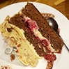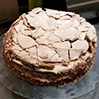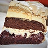 Z kremem chałwowym i kawową bezą, nasączany herbatą korzenną