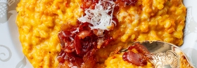 z chrupiącym boczkiem lub - w wersji bezmięsnej - orzechami pekan