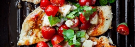 Grillowane filety z kurczaka z sałatką caprese z mozzarellą, pomidorkami i bazylią