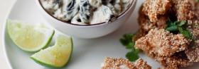 Kurczak w sezamie i pasta z grillowanego bakłażana