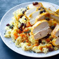 Kasza smażona z dynią, suszonymi pomidorami i fetą
