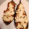 - Spód bakłażanów posmarować oliwą i ułożyć na blaszce. Nałożyć farsz z patelni, skropić winem, polać masą jogurtową, posypać kminem rzymskim i udekorować tymiankiem. Wstawić do nagrzanego piekarnika i piec przez 30 minut.