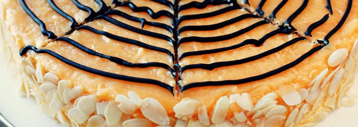 W wersji na Halloween sernik można udekorować "pajęczyną" z roztopionej czekolady.