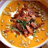 - Przygotować upieczone warzywa: z dyni usunąć nasiona i skórkę, pokroić na mniejsze kawałki. Pomidory obrać ze skórki, łyżeczką wyjąć i wyrzucić nasiona (zachować sok), cebulę i czosnek obrać z zewnętrznej warstwy.