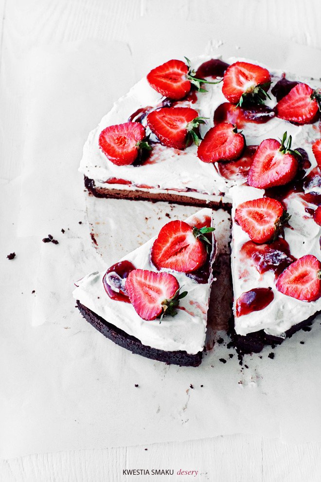 Sernik biało-czekoladowy z truskawkami i bitą śmietaną