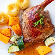 Steki z karkówki pieczone z dynią i suszonymi pomidorami