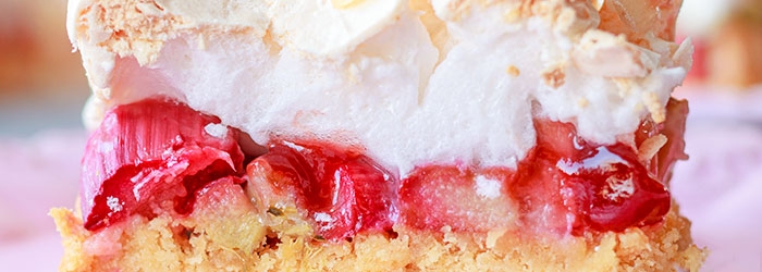 Proste ciasto na delikatnym kruchym spodzie z sezonowym, doprawionym cynamonem rabarbarem. Kwasowość rabarbaru zostaje świetnie „przełamana” puszystą bezą z płatkami migdałów oraz konfiturą malinową, którą częściowo rozsmarowałam na podpieczonym spodzie a częściowo dodałam do rabarbaru.