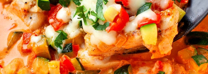 FIlety ryby w sosie z cukinią i papryką