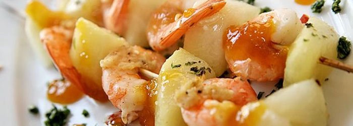Z dużą ilością świeżego imbiru. W imbirze marynujemy krewetki oraz wykorzystujemy go do sporządzenia sosu owocowego. Sosem polewamy gotowe szaszłyki. Świetnym dodatkiem będzie też pesto z kolendry i zielonej papryczki chili.