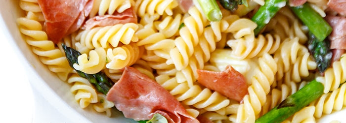 Makaron ze szparagami, szynką parmeńską i serem typu camembert