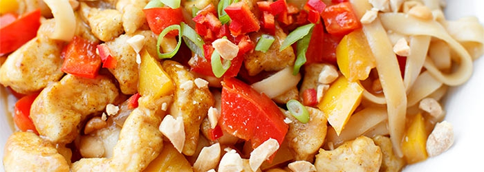 Pomysł na szybki obiad w stylu orientalnym. Kawałki soczystego kurczaka w przyprawie curry i makaron udon (lub mie / chow mein) podsmażone z warzywami w pysznym sosie hoisin na bazie masła orzechowego. Fani takich dań i smaków będą zachwyceni ;-) Połączenie delikatnej nuty curry ze smakiem orzechowym i szczyptą chili jest naprawdę uzależniające. Polecam do wypróbowania!
