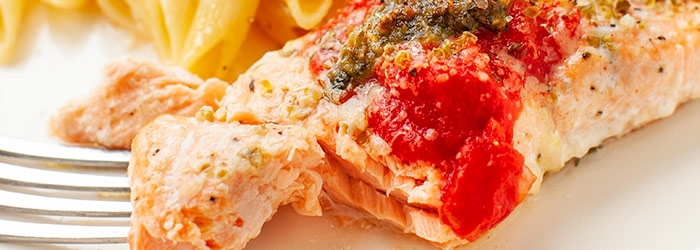 Szybki do zrobienia obiad w klimacie śródziemnomorskim, do którego wykorzystujemy filety z łososia, oliwę, pomidory, bazylię i oregano :) Z soku z pomidorów i oliwy oraz przypraw tworzy się pyszny i delikatny sosik.