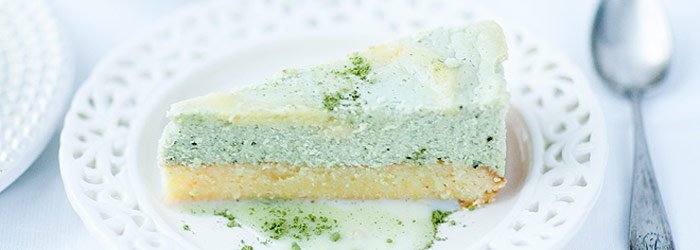 Do zabarwienia masy serowej na kolor zielony i nadania jej smaku zielonej herbaty użyłam proszku (w postaci pudru) z zielonej herbaty, o nazwie „Matcha”. Używa się jej do przyrządzania różnych deserów, nie tylko podawanych w japońskich restauracjach. Można ją dodawać do lodów, panna cotty, masy z mascarpone np. do tiramisu, do drinków i wielu innych słodkości. Można ją kupić między innymi w sklepie internetowym. Jest bardzo wydajna. Jedno opakowanie wystarczy na przyrządzenie nawet około 10 różnych deserów. Średnio na jeden sernik z 1/2 kg sera dodaje się około 2 łyżeczek proszku. Proszek wystarczy wymieszać z niewielką ilością ciepłej wody. Pomijając zieloną herbatę i dodając np. ekstrakt z wanilii, otrzymamy klasyczny, biały sernik.