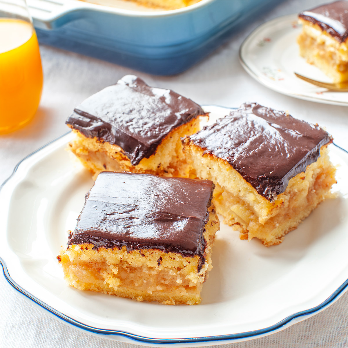 Kto kocha Delicje, pokocha też tę szarlotkę o smaku pomarańczy, polaną polewą czekoladową. To dwie warstwy biszkoptowego ciasta, przełożone prażonymi jabłkami z dodatkiem dżemu pomarańczowego i wykończone czekoladą. Polecam Wam ten puszek 💕