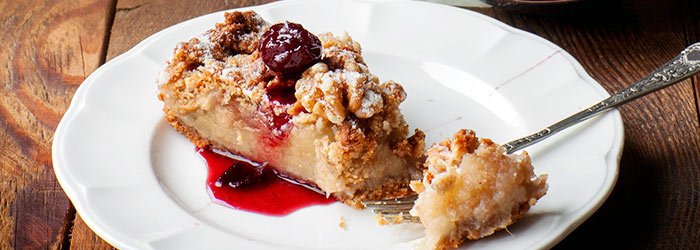 Na weekend polecam pyszną i prostą do przygotowania szarlotkę orzechową, z mocno wyczuwalnymi w cieście orzechami włoskimi oraz migdałami. Nadzienie to uprażone jabłka z dodatkiem cynamonu i wiśni w syropie (lub z kompotu/mrożonych).