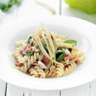 Makaron z brokułami, szynką parmeńską i orzechami włoskimi