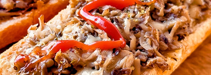 Zapiekankom zawsze mówimy TAK! Na lekkich i puszystych bagietkach, z farszem pieczarkowo-serowym z cebulką, czosnkiem i oregano. Oraz oczywiście z ketchupem.