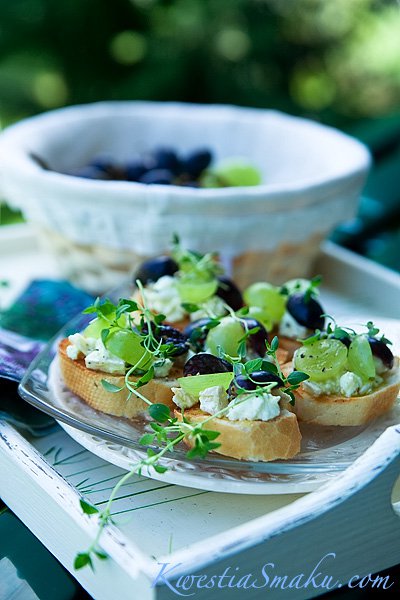 Grzanki z kozim serkiem, winogronami i tymiankiem
