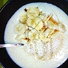 Oprócz jaglanki kokosowej i jabłkowej robię jeszcze jaglankę z bezglutenowych, organicznych płatków prosa. Zwykle używam mleka roślinnego (jaglanego, ryżowego, migdałowego, owsianego), ale oczywiście można użyć zwykłego krowiego. Czasem, gdy mleko jest bardzo skoncentrowane, do gotowania dodaję też wodę. Taka jaglanka świetnie smakuje posypana owocami granatu, ale sprawdzą się też inne sezonowe owoce, banany, truskawki, maliny... Jeśli używam niesłodzonego mleka, skrapiam jaglankę syropem klonowym. Jeśli mam czas prażę też do niej płatki migdałów.