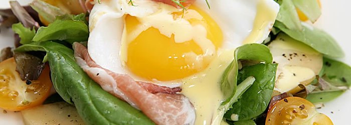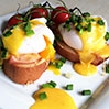 Jajko sadzone na szynce z orzechami włoskimi i sosem holenderskim