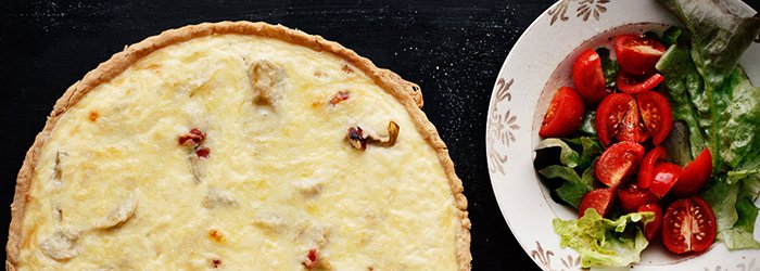 Charakterystyczne składniki quiche lorraine to boczek, gałka muszkatołowa i ser Gruyère. Moja wersja tej słynnej francuskiej potrawy wzbogacona jest o karczochy.