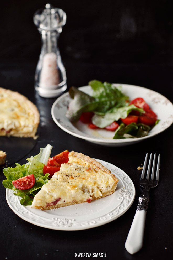* jeśli mamy mniejszą formę np. 23 cm średnicy, wówczas nie wykorzystamy całego ciasta kruchego tylko około 2/3 ilości, składniki na nadzienie i masę jajeczną należy zmniejszyć również o około 1/3