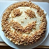 - Przykryć drugą częścią ciasta i rozsmarować resztę polewy. Udekorować orzechami.