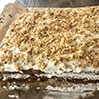 - Przykryć drugą częścią ciasta i rozsmarować resztę polewy. Udekorować orzechami.