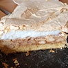 - Na spód wyłożyć jabłka, wyrównać powierzchnię, wyłożyć pianę z białek. Wstawić do nagrzanego piekarnika i piec przez 15 minut. Następnie zmniejszyć temperaturę do 120 stopni C i piec ciasto przez 25 minut (na tym etapie suszymy bezę). Następnie ustawić 170 stopni C (ale włączamy tylko dolną grzałkę oraz termoobieg) i piec przez około 25 minut (na tym etapie dopiekamy spód ciasta). W połowie tego ostatniego etapu pieczenia, np. po 15 minutach, sprawdźmy spód podważając go łopatką, być może będzie już wcześniej zrumieniony, wówczas skracamy czas pieczenia.