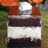 Słynne ciasto W-Z. Dwie warstwy kakaowych biszkoptów przełożonych bitą śmietaną.
